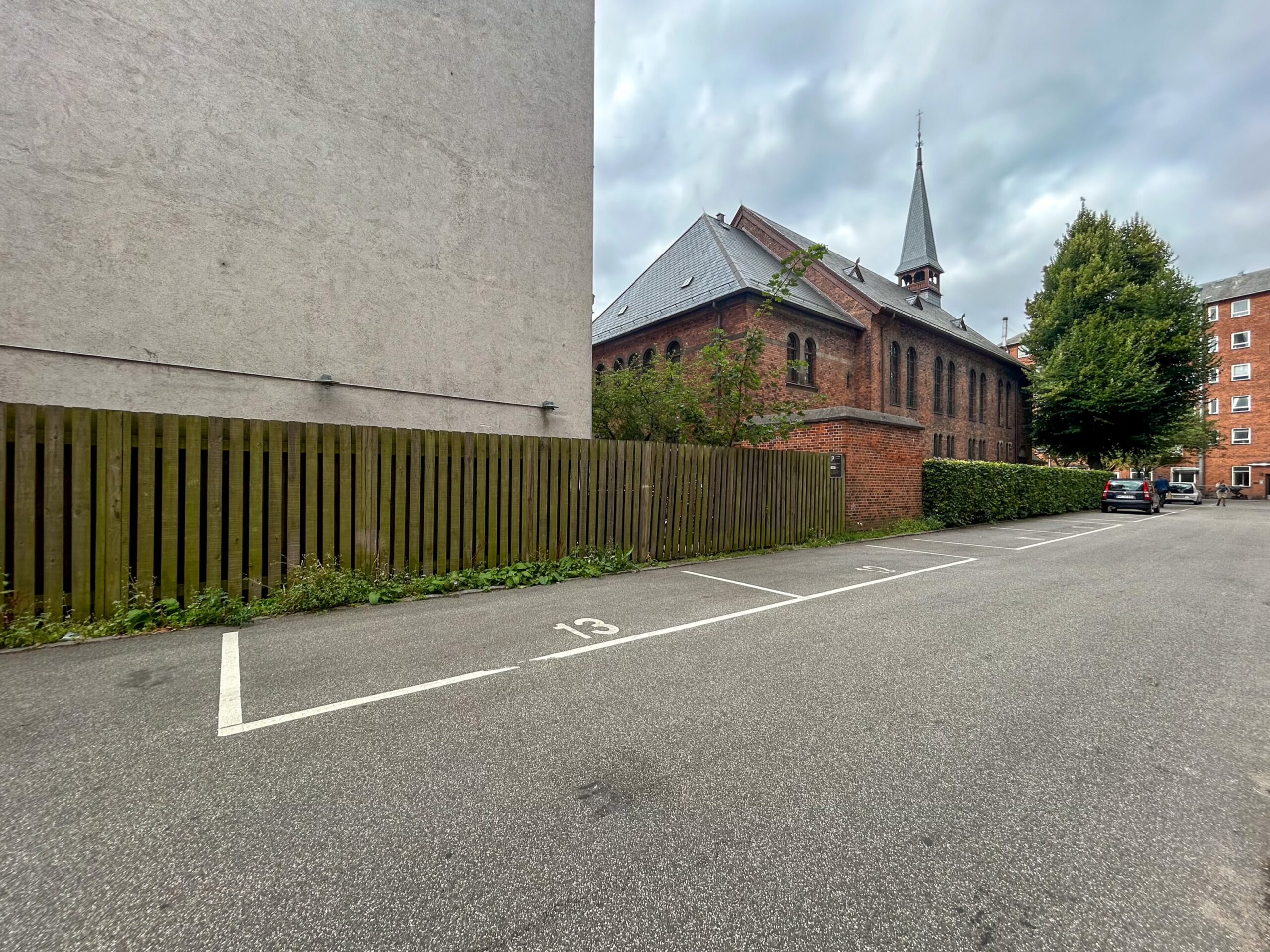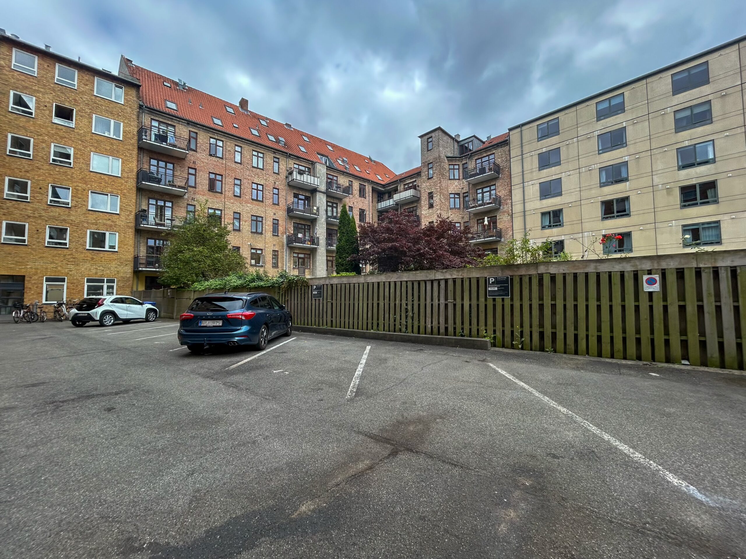 Pladserne er fordelt rundt omkring ejendommen samt i gården og kan lejes af alle. En nem og central parkeringsløsning midt på Frederiksberg.